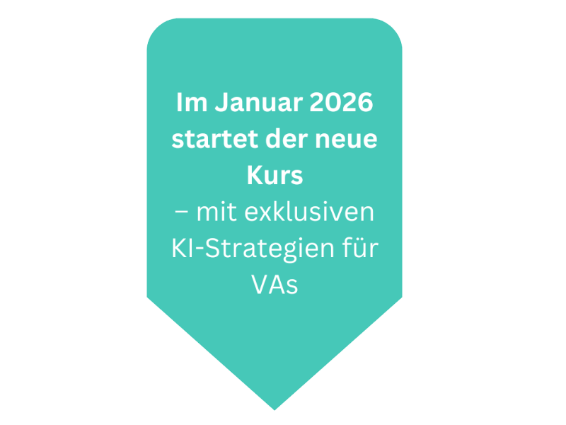 Gerade überarbeite ich den kompletten Einsteiger-Kurs, sodass du die absolut aktuellen Infos zum VA-Start sowie brandneuen Module zu KI-gestützter Produktivität, smarten Tools & modernen Kundenstrategien bekommst.